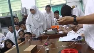 Praktikum Ipa yaitu tentang Gelombang Tranversal dari kelas 8f tahun 2015-2016 SMP Negeri 1 Rambipuji.