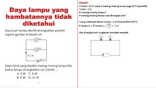 Soal dan Pembahasan soal : Daya Lampu Rangkaian Seri dan Paralel dengan nilai hambatan yang tidak diketahui.